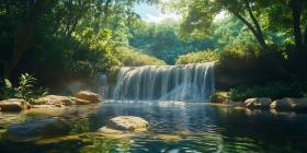Serene Waterfall in Lush Rainforest A Captivating Nature Scene