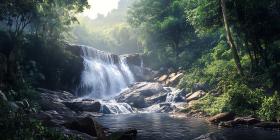 Serene Waterfall in Lush Rainforest Tranquil Nature Scene