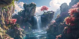 fantasy landscape digital art waterfall rocks cliffs plants vegetation coral flowers sun sky scenic nature environment artwork painting illustration fantasy art digital painting vibrant colors lush serene peaceful magical whimsical dreamlike artistic creative beautiful amazing incredible spectacular stunning breathtaking picturesque scenic view fantasy world imaginary unreal surreal otherworldlySimilar Photos