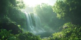 Serene Waterfall Lush Rainforest Oasis