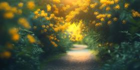 Golden Path Sunlit Nature Trail with Yellow Blossoms
