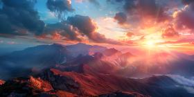 Breathtaking Sunset Over Serene Mountain Lake: A Glorious Display of Nature's Palette with Dramatic Clouds and Reflections