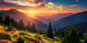 Breathtaking Sunset Over Serene Mountain Lake: A Glorious Display of Nature's Palette with Dramatic Clouds and Reflections