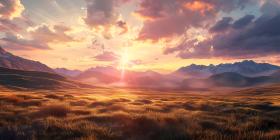 Breathtaking Sunset Over Serene Mountain Lake: A Glorious Display of Nature's Palette with Dramatic Clouds and Reflections