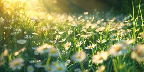 Field of Daisies: A Dreamy Display of White Petals and Yellow Centers Bathed in Soft Sunlight