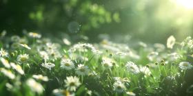Field of Daisies: A Dreamy Display of White Petals and Yellow Centers Bathed in Soft Sunlight