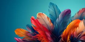 Colorful Feathers: A Striking Display of Pink, Orange, Red, and Blue Against a Solid Blue Background