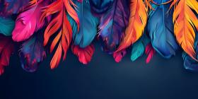 Colorful Feathers: A Striking Display of Pink, Orange, Red, and Blue Against a Solid Blue Background