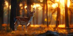 Sunset Serenity: Majestic Deer by the Lakeside Amidst Autumn Foliage and Misty Forest Reflections