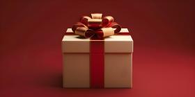 Festive Gift Box with Red Ribbon and Bow: Elegant and Neatly Wrapped Present Against a Solid Red Background