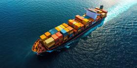 Cargo Ship on Calm Ocean: Vessel Loaded with Colorful Shipping Containers Moving Forward on a Sunny Day, Highlighting Global Trade and Maritime Transport