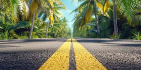 A Sun-Kissed Road Through a Verdant Tropical Paradise, A Pathway to Eternal Summer