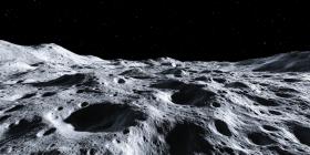 A Barren Lunar Landscape, A Cratered Surface Under a Starry Sky