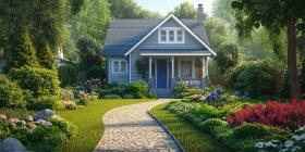A charming cottage nestled amidst a vibrant garden awaits