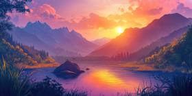A sun-drenched mountain vista, where nature's beauty unfolds in all its glory