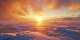 A breathtaking sunrise paints the sky in hues of pink and purple, casting a magical glow over the snow-capped mountains