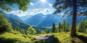A sun-drenched mountain vista, where nature's beauty unfolds in all its glory