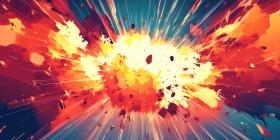 A fiery cataclysm erupts, a blinding explosion of incandescent energy erupts outward, casting a fiery glow across the canvas