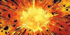 A fiery cataclysm erupts, a blinding explosion of incandescent energy erupts outward, casting a fiery glow across the canvas
