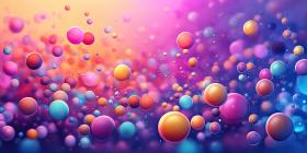 A kaleidoscopic explosion of vibrant orbs, ranging from deep magenta to shimmering turquoise, creates a mesmerizing visual symphony