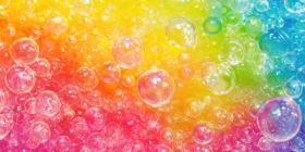 A kaleidoscopic explosion of vibrant orbs, ranging from deep magenta to shimmering turquoise, creates a mesmerizing visual symphony