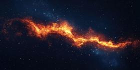 A fiery torrent of energy erupts across the vast expanse of space, illuminating distant stars and nebulae in a breathtaking display of cosmic power