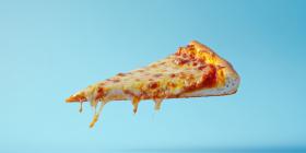 Cheesy Pizza Perfection - A close-up of a perfectly cooked pizza slice with gooey, melted cheese dripping down, inviting you to take a bite and savor every cheesy morsel