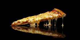 Cheesy Pizza Perfection - A close-up of a perfectly cooked pizza slice with gooey, melted cheese dripping down, inviting you to take a bite and savor every cheesy morsel