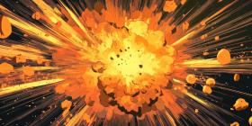 A fiery cataclysm erupts, a blinding explosion of incandescent energy erupts outward, casting a fiery glow across the canvas