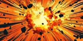 A fiery cataclysm erupts, a blinding explosion of incandescent energy erupts outward, casting a fiery glow across the canvas
