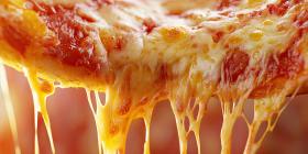 Cheesy Pizza Perfection - A close-up of a perfectly cooked pizza slice with gooey, melted cheese dripping down, inviting you to take a bite and savor every cheesy morsel