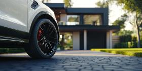 A sleek black SUV gleams in the warm evening light, parked in the driveway of a modern mansion, hinting at a life of comfort and effortless travel