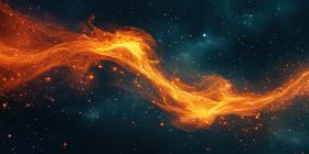 A fiery torrent of energy erupts across the vast expanse of space, illuminating distant stars and nebulae in a breathtaking display of cosmic power