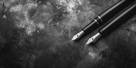 A Writer's Instrument - A sleek fountain pen rests gracefully on a textured surface, poised and ready to capture thoughts and ideas on paper