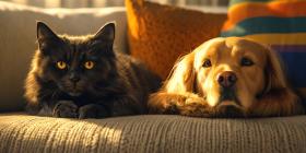 An unlikely friendship blossoms between a curious cat and a loyal golden retriever