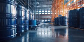 A colorful symphony of barrels lines the industrial corridor, reflecting the vibrant hues of industry