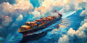 A majestic cargo ship sails through a sea of clouds, carrying dreams across the ocean