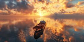 A majestic cargo ship sails through a sea of clouds, carrying dreams across the ocean