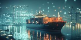 A digital tapestry of global trade, with a cargo ship as the centerpiece