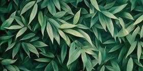 A lush canopy of vibrant green bamboo leaves creates a serene and inviting atmosphere, inviting the viewer to step into a world of natural beauty and tranquility