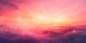 A Crimson Sky: A dramatic scene of fiery clouds erupting across the horizon, casting an ethereal glow