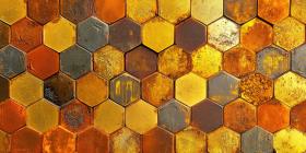 A Tapestry of Time: A weathered hexagonal pattern, where gold gleams through the cracks of time