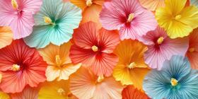 A Rainbow of Blooms: A vibrant collection of hibiscus flowers in a kaleidoscope of colors