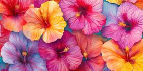 A Rainbow of Blooms: A vibrant collection of hibiscus flowers in a kaleidoscope of colors