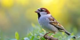 A Moment of Serenity: A Sparrow perched on a branch, bathed in the warm glow of the setting sun
