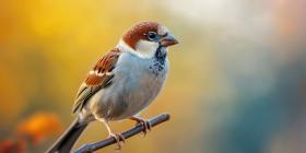 A Moment of Serenity: A Sparrow perched on a branch, bathed in the warm glow of the setting sun
