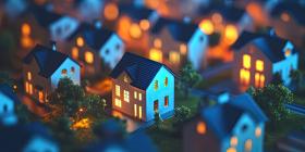 A Neighborhood of Dreams: A miniature city lights up under the warm glow of twilight, each house a beacon of warmth and comfort in the gathering dusk