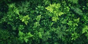 A Verdant Tapestry: A Lush Wall of Intertwining Green Leaves and Ferns