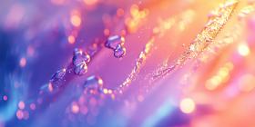 Dewdrop Dreams: A feather, adorned with glistening dewdrops, shimmers against a backdrop of vibrant pinks and purples