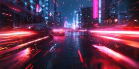 Neon Reflections: A Rainy Night in the City, where neon lights cast a vibrant glow on the slick pavement, and the rhythm of the falling rain echoes through the bustling streets